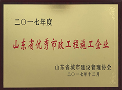 公司被評為“山東省**市政工程施工企業(yè)”